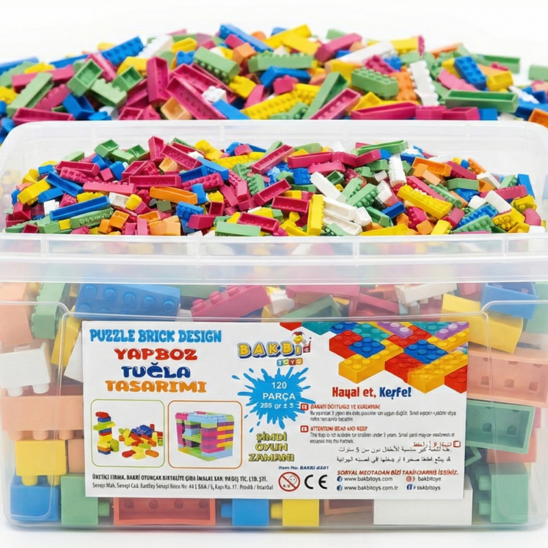 Çocuğunuzun hayal dünyasının sınırlarını zorlamasına ve kendi dünyasını inşa etmesine hazır mısınız? Bakbi Toys 120 Parça Yapboz Tuğla Tasarımı seti ile öğrenme ve eğlence bir araya geliyor!